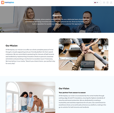The platform positioned Rentopiaa as a modern, credible real estate brand ready to grow without constant technical rework or redesign.